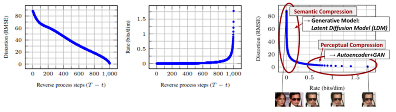 위 그림과 같이 reverse diffusion process 초반부에는 semantic 정보 위주로 복원하여 큰 틀에서 이미지 유사성을 폭발적으로 늘리고, 후반부에는 perceptual 정보 위주로 복원하여 디테일한 부분의 이미지 유사성을 천천히 늘리는 방식으로 학습된다는 것이다.