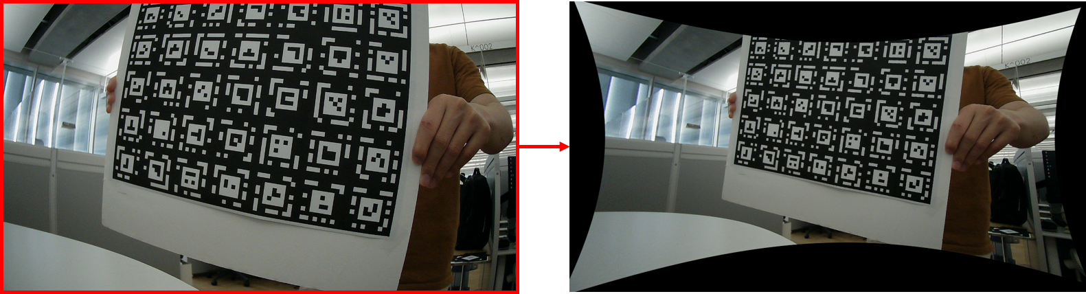 다음 예시를 보면 왜곡 보정 전 대비 왜곡 보정 후가 더 적은 영역을 커버하는 것을 볼 수 있다.