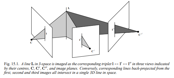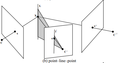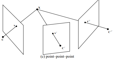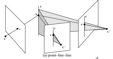 2. 두 시점에서 line-line, point-line, point-point를 알고 있을 때, 나머지 한 시점의 point에 (epipolar contraints보다) 강한 contraint를 걸 수 있다.