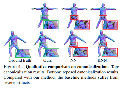 Canonicalization이라고 불리는 STEP 1은 주어진 3D scan sequence의 매 프레임마다 각각 독립적으로 적용된다. 앞서 언급했듯이 매 프레임의 3D scan을 canonical pose, T-pose로 자세 변경하는 작업이다.