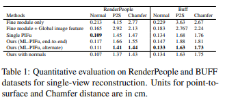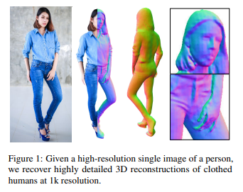 제목에서 그대로 알 수 있듯이 PIFU의 HD 버전 논문이다. PiFU에서 pixel aligned feature를 이용하는 것이나, pixel aligned feature + depth z 를 입력으로 하는 occupancy network를 쓰는 것이나 동일하지만 더 성능을 끌어올리기 위해 추가 정보를 이용했다는 차이만 존재한다. 간단히 말하면 High resolution 이미지를 사용하는 module을 추가했고, front normal, back normal을 생성해서 추가 입력으로 사용한 차이가 있다.