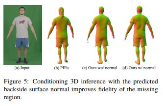 참고로 front/back normal map은 pix2pix (image translation GAN) 구조와 대량의 3D human model 데이터를 이용해 학습해둔 네트워크로 만든다.