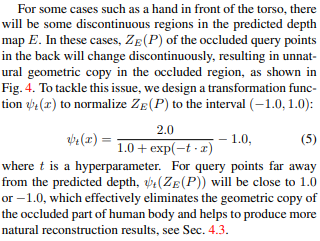 참고로 (이해가 안되었는데) occluded region에서 이러한 front depth + offset을 사용하는 기법은 불연속적인 값을 보이기 때문에 위와 같은 transformation function을 씌워준 뒤 사용했다고 한다.