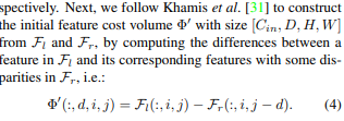voxel aligned feature는 stereo에서 cost volume을 만드는 방식과 동일하게 만든다. disparity를 정한 범위 내에서 (예를 들어, 1~192) disparity를 바꿔가며 left feature와 right feature 간의 차이를 쌓은 형태다. D channel 이 num(disparity)가 되겠다.