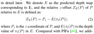 PiFU에 사용되던 depth, z와 같이 직접 real scale depth, z를 던져줄 수도 있지만 스테레오 세팅의 장점을 살려 front depth를 알 수 있는 상황에서 front depth + offset 형태로 사용하는 것이 더 효과적이라고 판단해서 이렇게 했다고 한다. 실제로 효과도 더 좋았고.