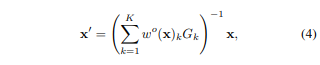 그리곤 canonical space에서 정의된 density/color network에 입력으로 들어가 NeRF가 학습되고, 병렬적으로 neural blend weight field network를 또 한 번 통과해서 이번엔 canonical용 w(x)가 나온다. 역시나 w(x)는 residual이다.
