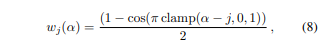 수식(8)과 같이 positional encoding 각 term 앞에 곱해질 weight를 만들어 사용했다. 이로써 별도의 조치 없이도 coarse-to-fine 방식으로 low-frequency 정보부터 학습을 하고 high-frequency 정보를 뒤이어 학습하게 된다.