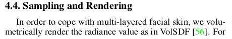 Volume rendering 네트워크 학습할 때 효율을 증가시키는 방법 중 대표적인 것이 ray에서 point sampling을 어떻게 하느냐에 해당하는 부분이다. 일단 현재 ray에 대해 표면을 찾는다. 표면을 찾았다면 +- 0.5mm 해당하는 영역에서 32개의 점을 뽑아 사용하는 식으로 표면 위주로 sampling하도록 했다. 표면을 못찾는다면 ImFace에서 사용했다는 방식인데, 아래 그림에서 빨간 원처럼 대충 정해진 간격으로 약간 sampling 하고 해당 위치 기점으로 가장 가까운 표면까지 거리를 반경으로 다시 한 번 더 sampling하는 식으로 했다. ![]() 추가적으로 카메라 마다 화이트밸런스나 미묘한 색감 차이가 있을 수 있는데 이것을 커버하기 위해서 입력 이미지를 받을 때 시점마다 아주 얇은 MLP로 mappling해주고 쓴다고 한다. |