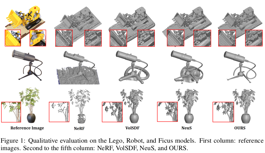 NeuS를 보완해서 High frequency 영역 성능을 끌어올리는 것을 목표로 하는 논문이다. 세가지 보완점을 말하는데 첫번째는 SDF to volume density 수식의 수정, 두번째는 low frequency와 high frequency의 분리 학습, 세번째는 SDF to transparency 조절을 위한 파라미터 추가이다. NeuS 핵심 수식을 가져와 사용만 하는 다른 논문들과 달리, 핵심 수식을 수정하는 것이 주요 내용이기 때문에 기본적으로 관심이 조금 간다.