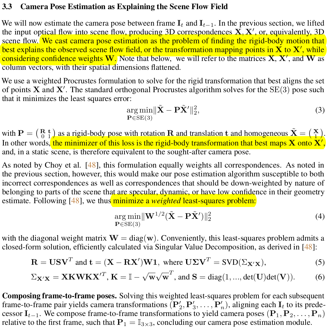 | 이미지 별 3D correspondence를 갖고 reprojection error minimization 문제를 풀면 카메라 포즈가 나온다. 이 때 그냥 풀어도 되지만 앞서 confidence를 한 번 뽑긴 했으니 여기서도 갖다 붙여서 풀어줬다. 이 문제는 그냥 SVD로도 풀리는 것이니 굳이 설명할 필요없어 보인다. |