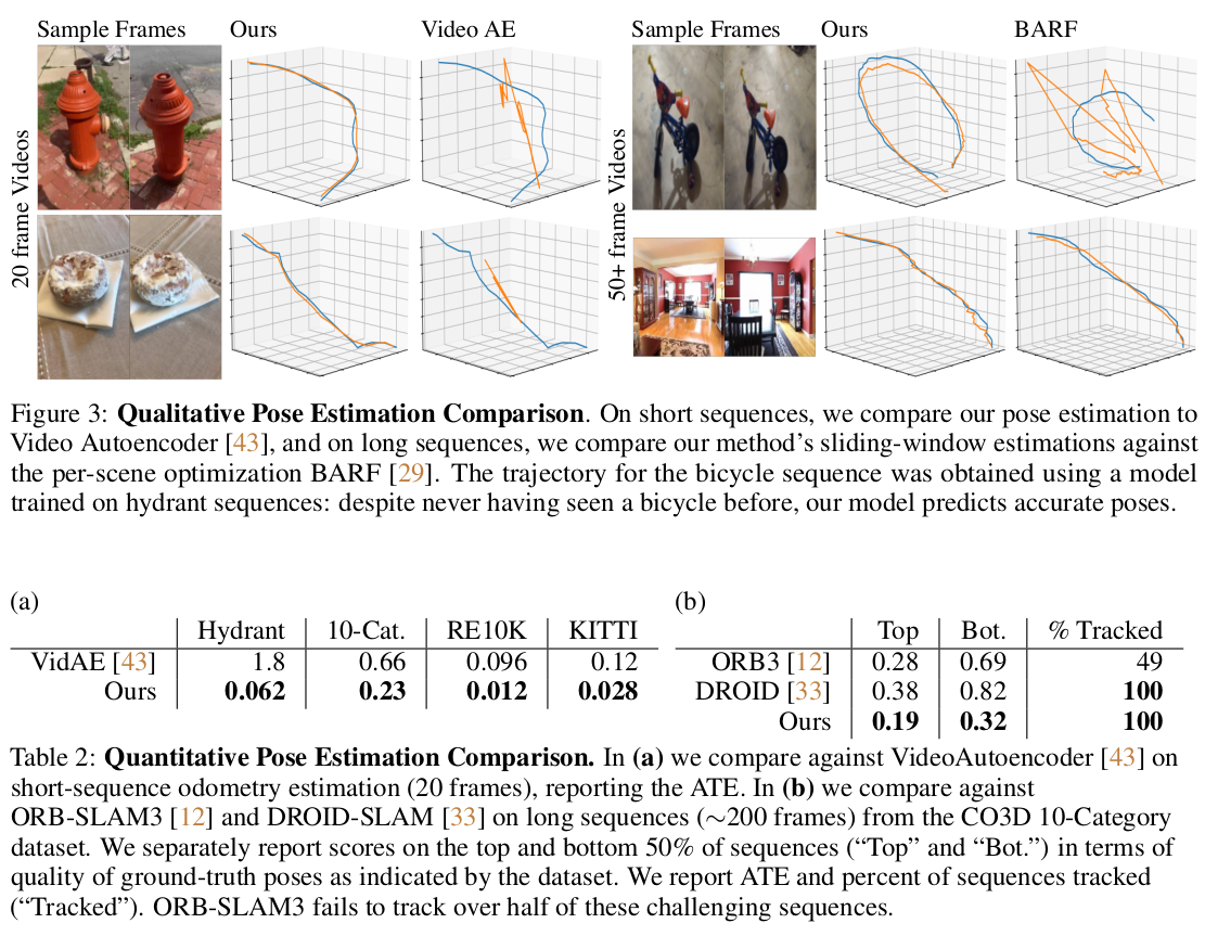 | 그림만 봐도 굉장히 복잡한데 조금 요약하면, 각 이미지마다 pixelNeRF로 3D point + color를 찾고 correspondence 매칭한 다음 predicted 3D point를 갖고 카메라 포즈를 역추정하는 구조다. pixelNeRF의 성능, 특히 generalization 성능에 전적으로 의존하는 구조다. correspondence를 찾는 과정 또한 optical flow SOTA 네트워크에 의존하기 때문에 불안한 면모가 많아 보인다. |