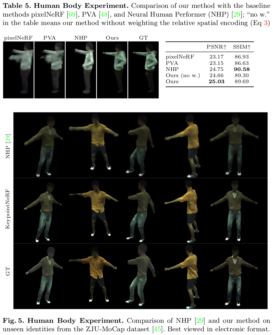 KeypointNeRF는 기존 NeRF에서 positional encoding을 global이 아닌 local하게 변경한 논문이다. 간단히 말해 anchor처럼 사용할 수 있는 3D point가 존재한다면 해당 point들 대비 상대적을 displacement를 positional encoding하는 식으로 사용하는 방법이다. 3D anchor point가 되는 point들은 어디서든 찾을 수 있지만 human keypoint에 대한 연구가 워낙 활발하다보니 사람으로 테스트한 것 같다. 방법론 자체는 3D point가 주어졌을 때 항상 사용할 수 있는 방식이다.