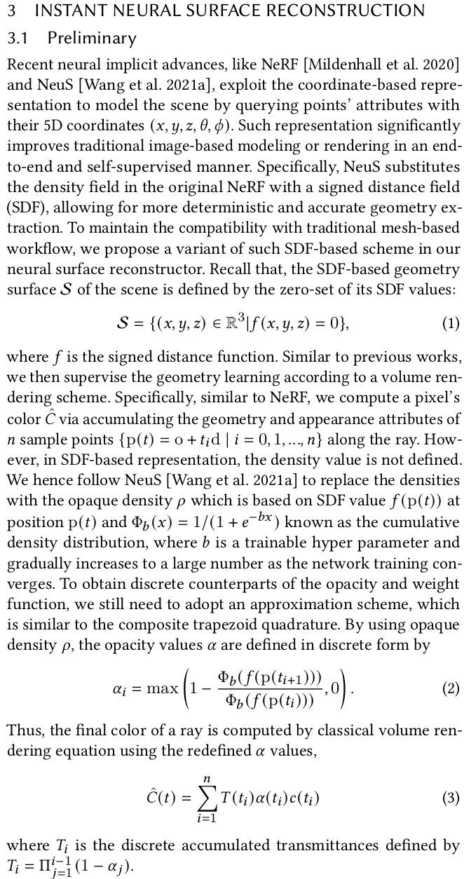 이론적 기반은 NeuS를 그대로 사용했음. |