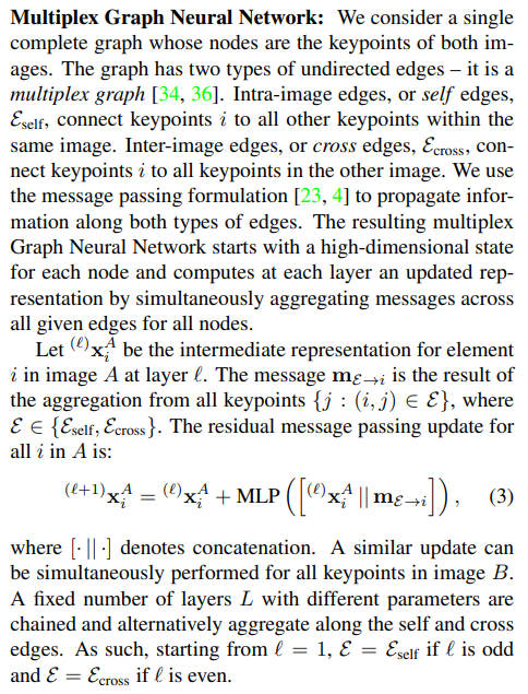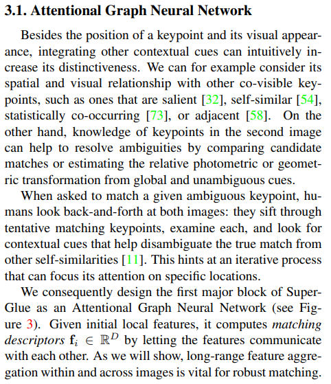 이 논문은 이러한 문제를 해결하기 위해 matching을 딥러닝에 맡긴 논문이다. 보통 SfM에서 track 형성하는 front-end, 최적화하는 back-end로 나뉘는데 이 논문은 track 형성의 후반부를 대체할 수 있는 기능을 하기 때문에 middle-end라고 하며 GNN을 이용해 keypoint+descriptor -> matching score를 내뱉는다.