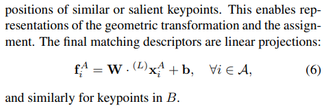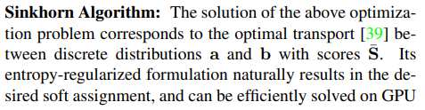 keypoint는 이미지 A, B가 있을 때 일대일 대응 관계를 만족해야 하고, 일대일 대응이 안된다면 매칭이 없다고 간주한다는 사실을 전제로 한다. 따라서 문제 formulation을 하길 주어진 keypoint +descriptor 그룹 A (크기M), B(크기N)가 있을 때 두 그룹 간 매칭 확률을 의미하는 MxN 크기의 soft assignment matrix P를 추정하는 것을 목적으로 한다. 일대일 매칭을 만족해야 하기 때문에 P matrix의 row 방향 혹은 column 방향 sum은 항상 1보다 작음을 만족해야 한다. |