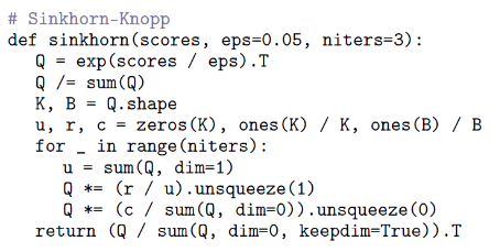 ![]() ![]() sinkhorm 알고리즘은 깊게 들어가지 않고 직관적 이해만 한다면, optimal transport system solution을 구하는 알고리즘으로 비용을 최소로 하는 이동 경로를 얻어내는 알고리즘이다. 가령 빵집 a, b가 학교 c, d에 빵을 납품한다고 했을 때 a-c, a-d, b-c, b-d 경우의 수는 각각 비용이 다를 것이다. 빵집과 학교와의 거리, 빵의 가격 등등 이런 경우 사용하는 알고리즘인데 입력 (a,b), (c,d) 그리고 abcd 간 score가 주어지면 (a,b),(c,d) 간 연결 관계를 출력으로 내준다. ------- 우리 경우에 대입해보면 지금 matching feature fa와 fb가 있고 score가 있으니 딱 맞는 설정이라고 볼 수 있다. score matrix S가 있으니 그냥 row 방향이나 column 방향으로 softmax를 취해서 매칭 값 구하면 안되나? 할 수 있는데 이렇게 하면 일단 기존 BF matching이랑 다를게 없고 M의 크기, N의 크기에 bias 같은게 생길 뿐만 아니라 row 위주로 볼때 bias, column 위주로 볼 때 bias 같은게 생길 수 있다. 따라서 공평하게 bias 없이 계산하는 방법으로 sinkhorn을 사용한 것이다. ---- 이걸 differentiable 하게 구현해서 사용했다고 한다. |