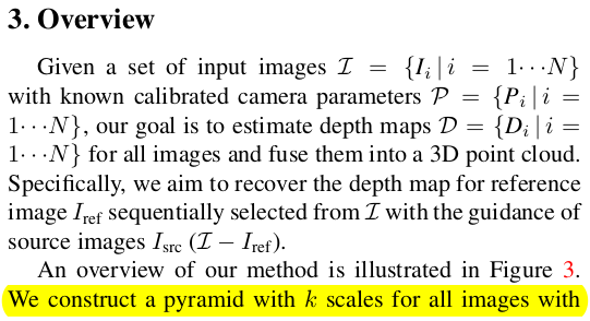 이 논문 안에는 기본 단위가 되는 MVS 모듈, ACMH와 ACMH를 Multi-scale로 확장한 ACMM 두 개가 담겨있고 주 포인트는 ACMM에 있다.