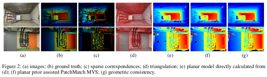 전체 입출력은 모든 MVS가 그렇듯 동일하다. 이 ACMP만의 독특한 구조는 다음과 같다. ACMM을 먼저 돌리기 (a->c) -> 2d triangulation (c->d) -> planar prior 넣어서 최적화 한 번 더 돌리기 (f, g) |