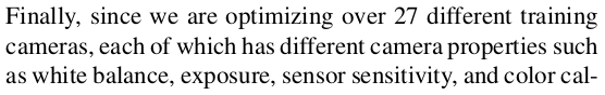 ![]() 첫 프레임 (혹은 이전 프레임)을 기준으로 두번째 프레임(혹은 다음 프레임)을 최적화하는 과정이다. 이부분은 learning으로 해결한다기 보다 pytorch를 이용하지만 optimization에 해당한다. 먼저 각 fixed 3d gaussian 마다 rotation과 translation (R, mu)를 할당한다. (rotation은 center를 어디로 두든 똑같으니 당연하고, mu는 당연히 global coordinate다.) 그리고 neighbor 끼리는 rigid 하다는 가정, 즉 움직임이 비슷할 것이라는 가정 하에 rigid loss로 최적화한다. 그 의미를 보면 일단 이전 시점에서의 neigbor 간 거리와 다음 시점 (rotation, translation 반영된 후) neighbor 간 거리가 같도록 MSE loss를 걸어준다. 수식 상 뒷 부분의 R_i_t-1 @ R_i_t.inv 가 identity에 가깝게 나와야만 같은 거리가 유지되기 쉽고 실제로 mu_j_t - mu_i_t도 이전과 같아야 거리가 유지되므로 이전 시점과 유사하도록 강제한다고 볼 수 있다. -------------- neighbor를 정의하는 방법은 설명되어 있지 않지만 수식에 notation을 보면 knn으로 찾은게 보인다. k=20쓴 것 같다. |