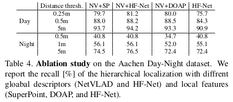 일단 SOTA 중 왜 SuperPoint와 NetVLAD를 썼는지 성능 지표로 보여준다. |