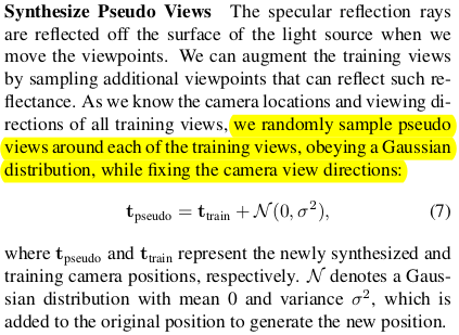 앞서 가상 view도 사용했다고 했는데, 이는 SH coefficient 자체가 view-dependent color를 표현해주기 때문에 training view로는 모든 view를 보여주면서 low SH coefficient로 distillation하는 것이 어렵기 때문이었다. GS에 주어진 SH cofficient를 바꿔치기하는 것이므로 SH 외 GS파라미터를 고정하고 무작위로 렌더링만 반복하면서 color를 찾는 것이 더욱 효과적이다. 따라서 기존 training view에 translation만 noise를 주어 가상 view를 더 만들어 학습했다. |