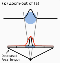실제로 3d gaussian의 크기가 이러한 dilation으로 인한 문제를 야기하기도 하지만 물리적으로 image plane이 앞뒤로 움직였을 때도 비슷한 혹은 더 심각한 문제가 발생할 수 있다. (focal length 변화) 먼저 1) zoom in(focal length가 커질 경우) + small 3d gaussian일 경우 ![]() 정해진 해상도의 이미지 평면이 물체에 가까워 질수록 1픽셀이 차지하는 화각이 줄어듦으로 projected 2d gaussian도 도 뾰족해진다. (3d gaussian이 엄청 작아서 여전히 1픽셀보다 작게 projection될 때다. 이때 똑같이 1픽셀 크기로 dilation해주는데 픽셀 크기가 작아졌으니 뾰족해 진 것과 같다.) 그러면 애초에 학습 때 이런 걸 보여줬으면 모를까 ![]() 이렇게 생겼을 때 렌더링 잘되도록 학습시켜놨는데 갑자기 ![]() 이렇게 뾰족하게 줄여버리면 물체가 얇아지는 문제가 있을 것이다. |