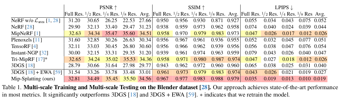 3d gaussian의 크기를 제한하는 기준은 training view 해상도로 생성한다. |