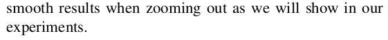 먼저 3d gaussian 크기와 pixel size 간의 문제 이므로 3d gaussian의 크기를 pixel size를 고려하여 특정 크기 안으로 제한하는 아이디어를 사용한다. 3d gaussian의 크기를 제한한다고 해도 focal length가 짧아져 버리거나 카메라 거리가 멀어지는 것은 어쩔 수 없는 문제기 때문에 이를 풀기 위해선 2D filter를 가해서 gaussian이 이를 인지하고 학습될 수 있도록 했다. |