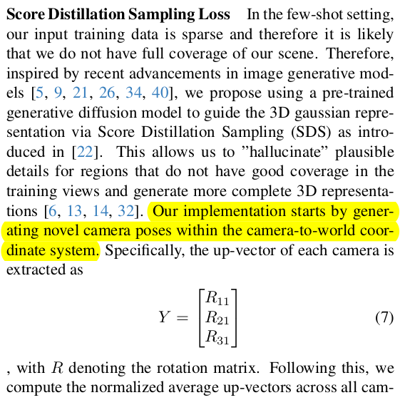 더 나아가 diffusion model을 활용해서 SDS loss로 training view에 없었던 시점에 대해 추가 보정을 해준다 (의미는 잘 모르겠음)