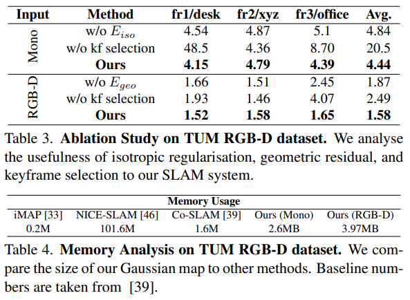 이 논문은 제목이 곧 내용이다. 이전 SplaTAM, GS-SLAM 이랑 같은 내용이다. 3d gaussian으로 view synthesis와 SLAM 두 목적 다 달성하겠다는 논문. 같은 아이디어인데 논문 게재가 되지 않았기 때문에 중복 아이디어 논문이 많다. 발 빠르게 낸 논문인데 이미 같은 아이디어 논문이 2개나 있다.