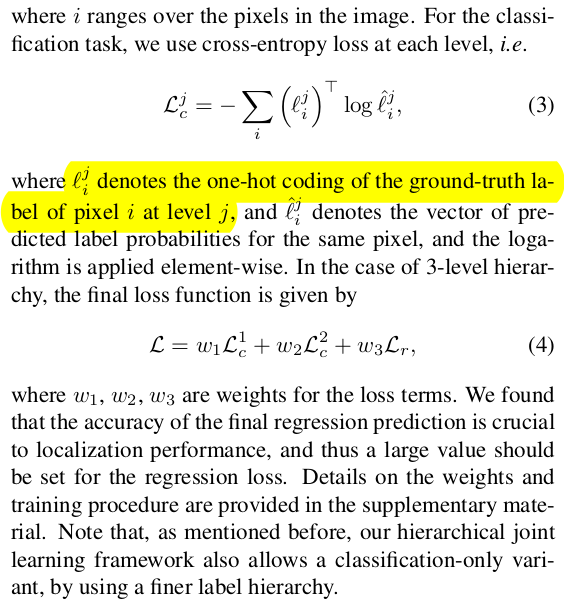 | 1) image pixel - 3d point gt를 해상도를 낮춰가면서 pair로 준비한다. 2) 각 coarse level은 3d point를 뽑는 구간(3x3 conv) + label map을 뽑는 구간(1x1) conv으로 구성 되어있고 마지막 fine level에서만 3d point를 뽑는 구간(3x3 conv + 1x1 conv)로 구성되어있다. 3) label map 구간은 coarse level에서 feature를 가져와서 사용하는 구조. label map은 사전에 3d point cloud를 clustering해서 그룹핑해둔 것은 gt로 사용하여, 네트워크가 주어진 이미지를 알아서 구역화하고 각개 격파하도록 유도하는 것. coarse label과 fine level은 서로 연관은 없다. 그냥 feature에서 서로 얽힐 뿐. |