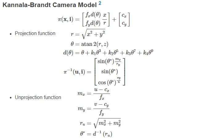 하지만 KB 모델은 애초에 pinhole 카메라 그대로이지만 distortion이 특별해서 광각이 되었다는 가정이기 때문에 distortion 모델이 다르다.