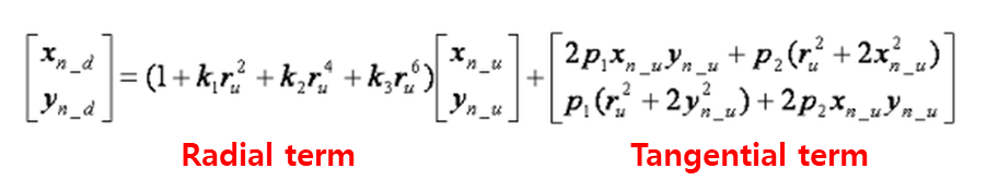 따라서 이 두 모델들에 포함된 distortion을 pinhole camera와 동일한 형태를 띄고 있다. 그래서 앞서 소개한 방식과 동일하다.