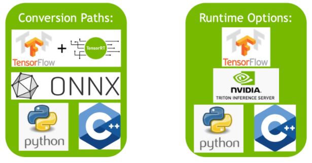 1) Tensorflow : 이름도 비슷하고 google과 친해서인지 tensorflow로 deploy하는 것은 그냥 지원된다. TF-TRT가 따로 있으니 당연한 것 같기도 한데, trt engine을 tensorflow로 동작시키는 것이 가능하다.