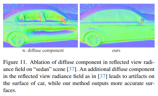 오히려 성능이 좋은 이유가, 모든 물체가 반사광 모델링이 필요한 것이 아닌데 일괄적으로 parameterization 해버리면 당연히 성능이 떨어질 것이다. 네트워크가 자체적으로 판단해서 필요한 부분만 반사광을 따로 배울 수 있도록 선택지를 열어주는 것이 더 효과적일 것 같다.