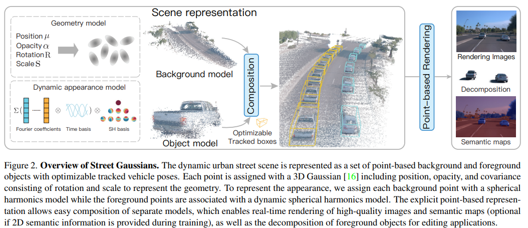 논문보다 프로젝트 보고서에 가깝다. 그냥 주어진 데이터셋에서 gaussian splatting 돌려보았고, tracker 활용해서 차량 분리해보았다. 그럼에도 불구하고 기록하는 이유는, 후반부 time parameter를 넣어 4D 로 확장할 때 기존 논문들과 달리 fourier transform을 썼다는 점이 독특했기 때문이다.