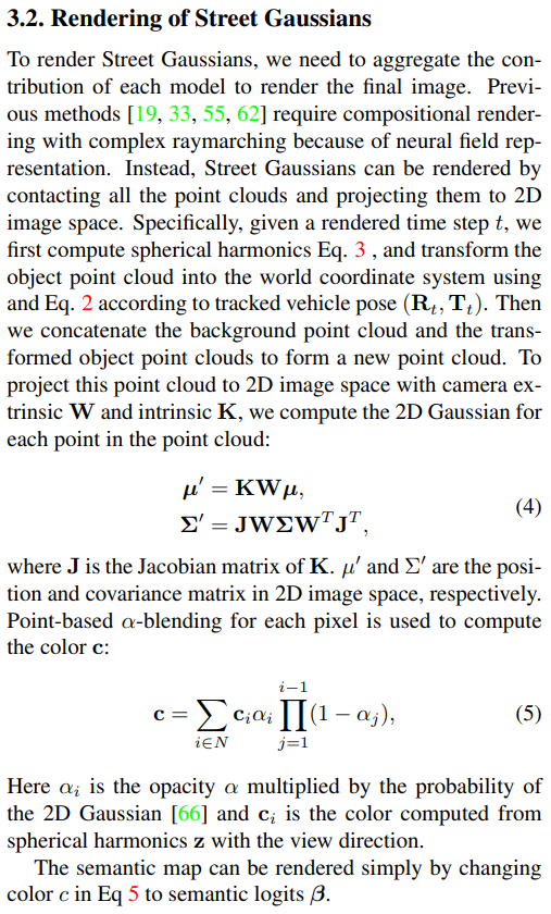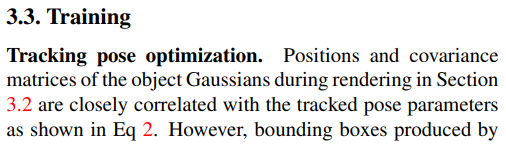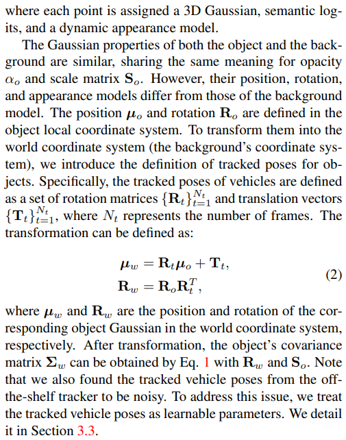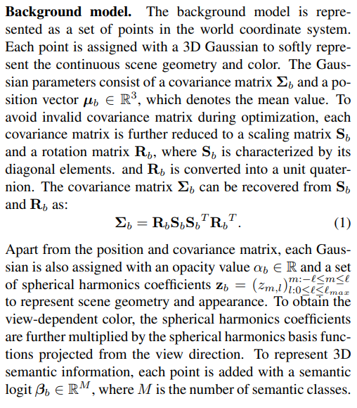 | 배경은 그냥 vanilla 3D GS 그대로 100% | 물체는 좌표계를 물체 좌표계 + 배경 좌표계 대비 물체 위치 (tracker가 뱉어줌) 으로 표현한다는 점 빼고는 대부분 3D GS와 같다. |