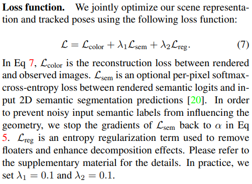 | 3D GS copy-and-paste | 물체 좌표계를 tracker에만 의존하면 tracker noise에 취약하므로, 물체마다 learnable residual을 두어 보정함. segmantation loss는 렌더링 결과의 semantic label도 얻고 싶어서 extra로 semantic label을 넣어둔 것 때문이다. 목적 자체가 데이터 생성용 시뮬레이터 여서 그런듯. |