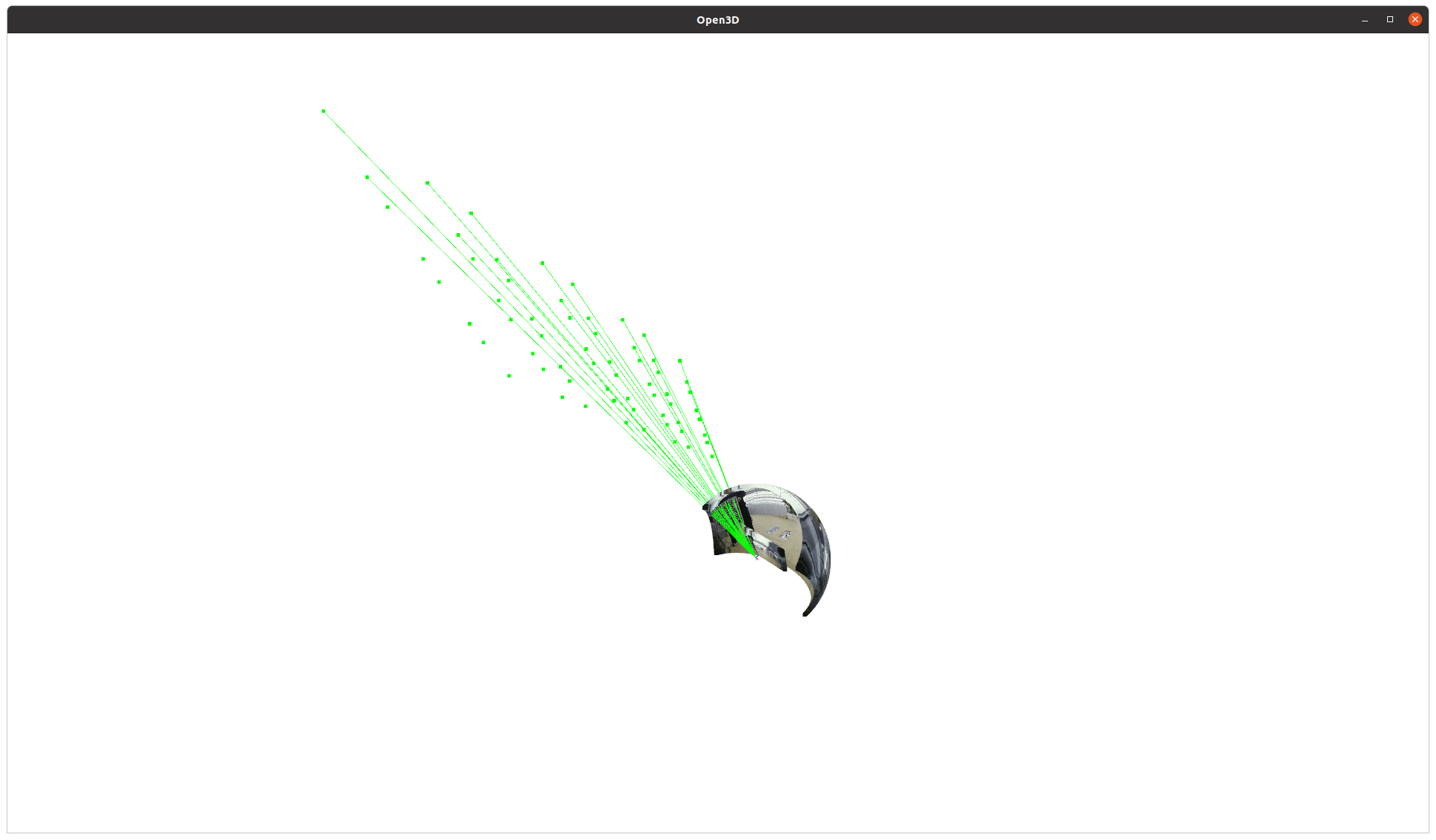 이 상태에서 저 녹색점(x,y 값만)들과 알고 있는 3D point 간의 PnP를 푸는 것이다. 이러면 PnP 알고리즘이 동작 안할 이유가 없다!