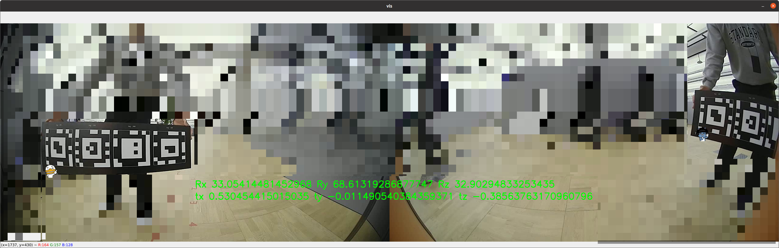 두 카메라 간의 extrinsic을 계산하기 위해 광각 PnP를 활용한 예시다.