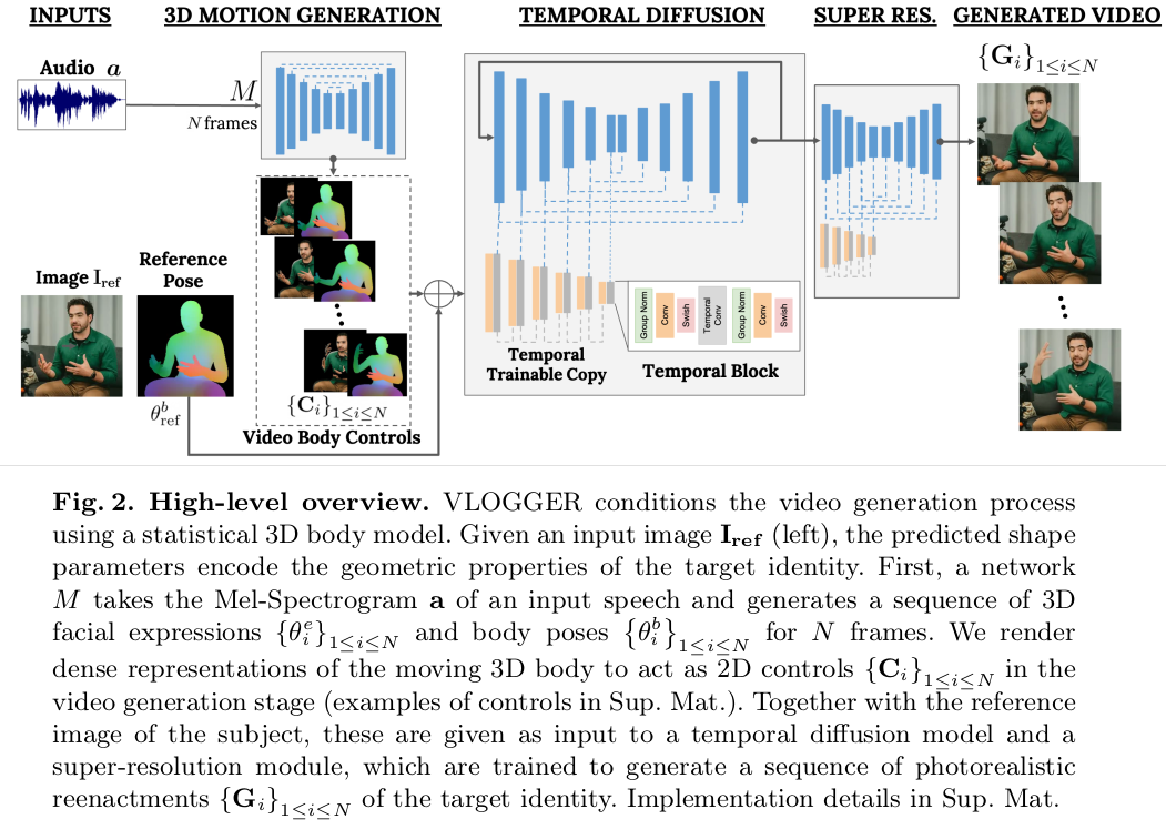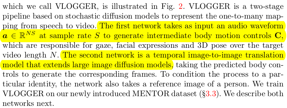 long audio + single image 로부터 long video를 만들어 내는 내용. 목적 자체는 가상 대화를 활성화할 수 있게 하는 것이다. 소리만 갖고 전화하는 것을 넘어서 적절하게 생성된 이미지로 영상통화를 하는 것처럼 만들어 낸다는 것이 궁극적 목표다. 그 초기 연구라고 보면 될듯.