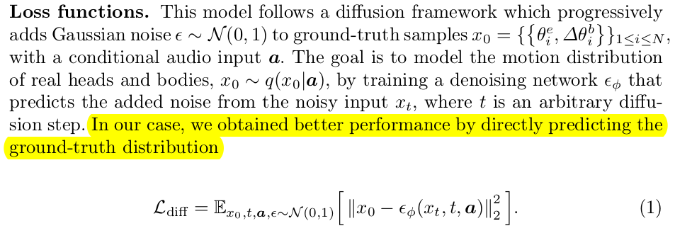 | 사전에 소리와 모션이 가미된 영상을 확보해두고 (SMPL도 얻어두고) 시작한 것. 학습 때부터 multi frame 다 넣으면 학습이 잘 안될 것 같았는지 single frame으로 웜업 후 전체 학습했다고 한다. |