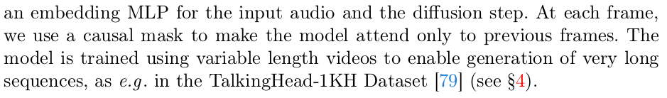 | 학습용 영상의 길이가 한정되어 있는데 소리 길이가 길 경우 더 필요할 수도 있음. 이럴 경우 rendering 결과를 입력으로 다시 넣는 식으로 해서 계속 더 쌓아나갔다고 한다. |