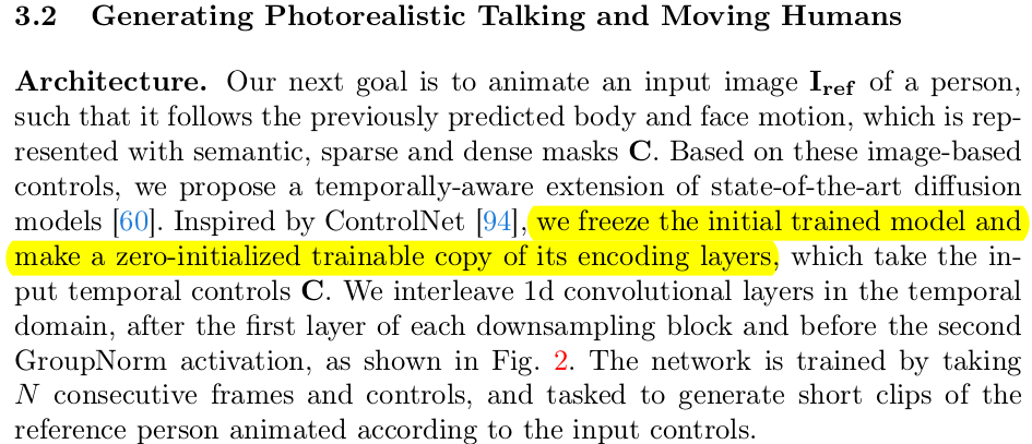 | 1) 소리에서 SMPL 파라미터 만들기 2) 입력 이미지에서 SMPL reference(특히 texture) 잡기 3) 소리에서 만든 SMPL 파라미터 + reference를 이용해 이미지, segmantic map 렌더링 4) diffusion 통과 |