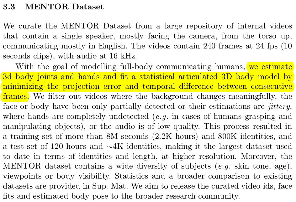 | 사용한 데이터셋 내용. 그냥 인터뷰 영상 같은 것 + SMPL 피팅 결과 |