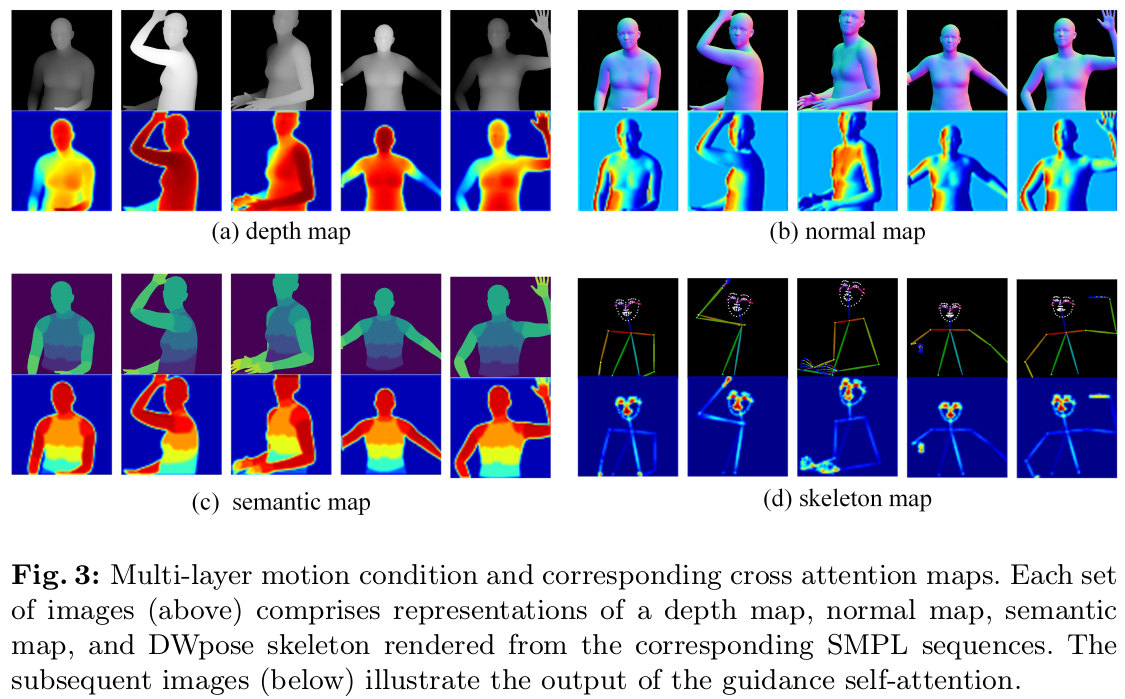 depth, normal, semantic, keypoint 각각 마다 self-attention F가 붙음. attention 활성화되는 부분을 시각화해보면 ![]() 위와 같이 생겼는데 depth는 형상, normal은 사람의 방향, semantic은 inter-occlusion, keypoint는 얼굴,손에 집중하게 만든다고 한다. |