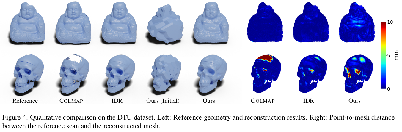 핵심 내용은 multiview reconstruction을 최적화 방식으로 수행하는 논문이다. differentiable rasterizer를 활용한 논문들하고 거의 유사한데 normal, depth까지 이용한다는 차이점이 있다고 보면 된다.