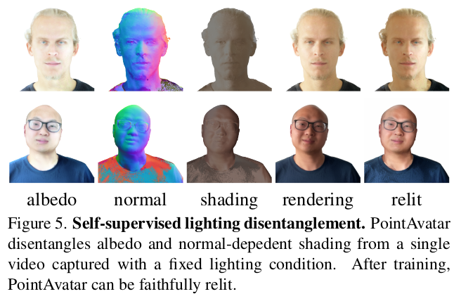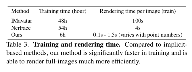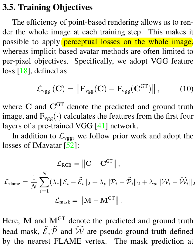 핵심 아이디어는 3DMM vertex와 대응되도록 point cloud를 생성한 뒤, 3DMM LBS 를 통해 변형해가면서 렌더링하는 것이다. 지금 보면 3DGS와 매우 유사한 논문. 다만 isotropic gaussian이라는 점이 차이.