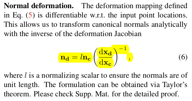 deformation이 정해지면 point normal을 수식에 따라 계산해주면 됨. |
