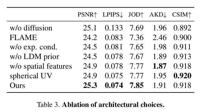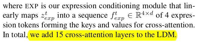 뒤에 따라 붙는 diffusion model은 당연히 pretrained + freezed임. 따라서 controlnet이나 IPAdapter 같은 방식으로 튜닝되도록 붙여야 함. 근데 둘 다 썼음 NPHM expression code를 condition으로 받도록 IPAdapter 붙임. |